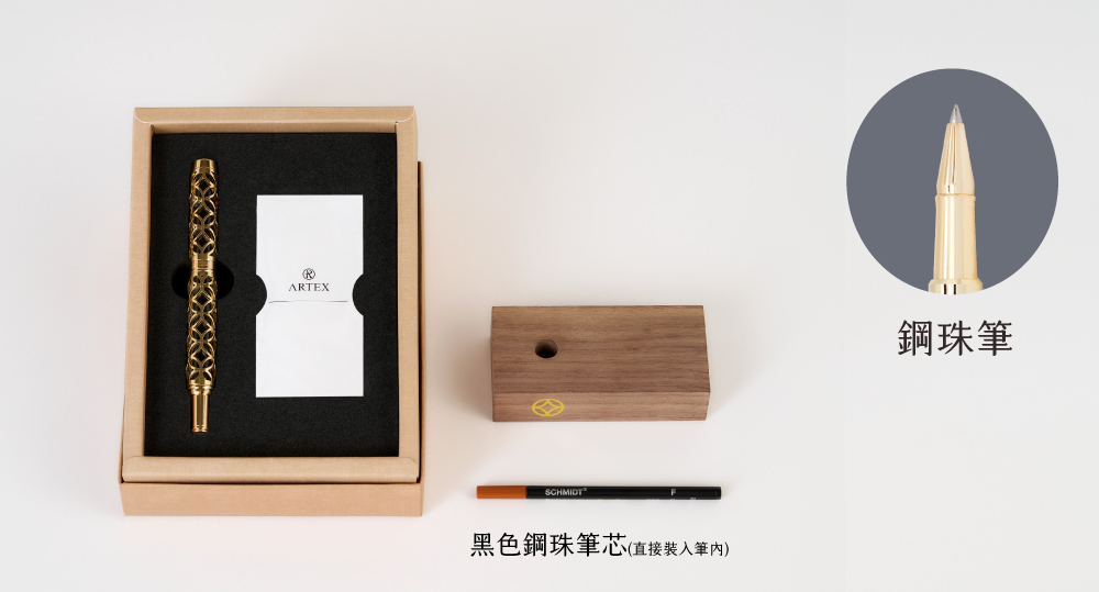 ▇材質:黃銅筆身為基礎,立體鏤空的部分則使用錫合金並結合脫蠟鑄造與雕刻技法的工藝。